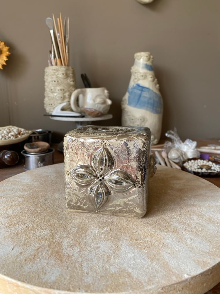 Finish : Clear glaze with Platinum Silver lustre finish.