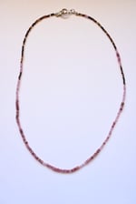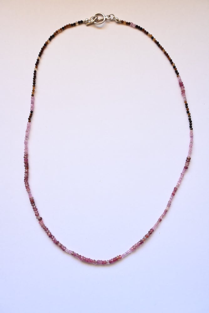 Hung on nylon coated steel wire, with sterling silver hardware.