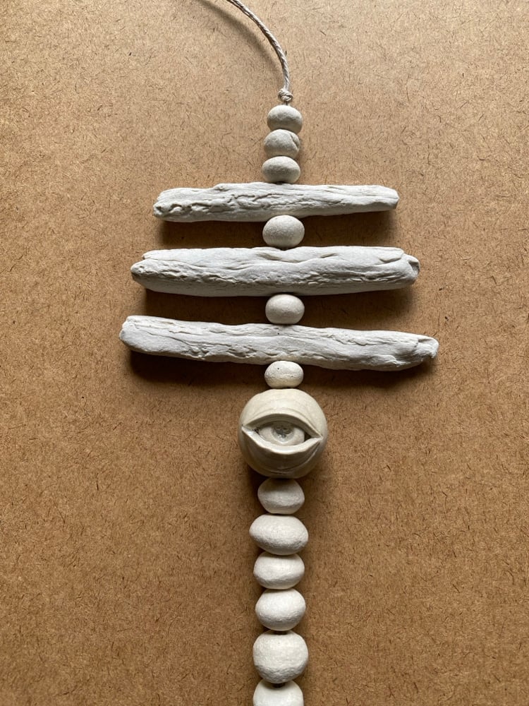 Eye piece is glazed with clear glaze and has beach sand infused into the eye.